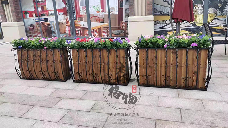 鐵藝防腐木花箱由鐵藝架子和防腐木花箱內(nèi)框兩部分組成。鐵藝架子具有實用性和裝飾性,在實用方法可以加固防腐木內(nèi)框,以防防腐木內(nèi)框被撐壞開裂,在裝飾性方面,可采用的風格比較多,有傳統(tǒng)的古典風和現(xiàn)代的歐式風,都是比較受歡迎的。鐵藝花架之所以能在建筑和裝飾材料中占有一席之地,是因為鐵藝花架本身有良好的強度、抗風性、抗老化。