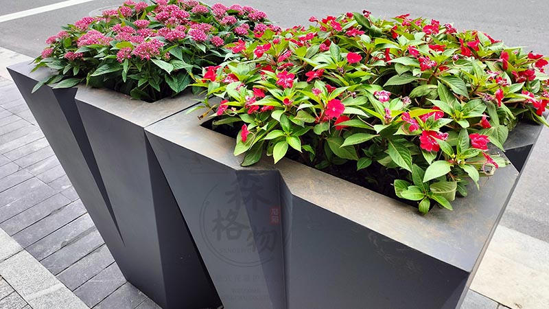 不銹鋼花箱是采用201、304或者316等不銹鋼鋼板,通過激光切割,設(shè)備折彎、焊接、打磨等制作流程,在表面再通過拉絲、噴塑、熱轉(zhuǎn)印、電鍍等處理后制作的各種造型和顏色的花箱。